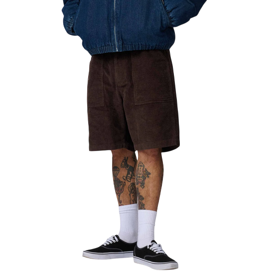 100% cotton corduroy, regular fit, workwear shorts with front patch pockets, twin back pockets, twin needle stitching and back pocket embroidery