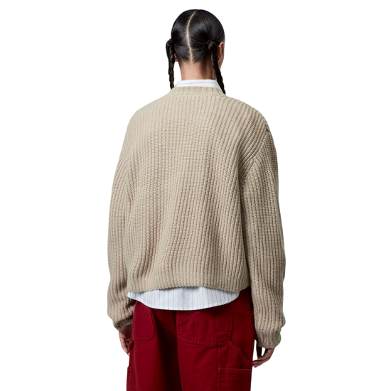 Le sweater ‘Mira’ pour femme est tricoté à partir d’un mélange de fils acrylique, laine et nylon ; et confectionné en tricot intégral aux emmanchures. Le Square Label est cousu sur la poitrine.