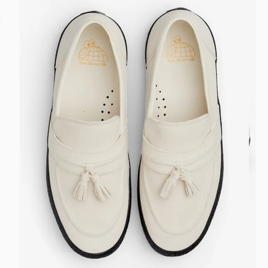 Le VM005 est notre version d’un modèle sans lacets, un hybride entre le VM002 et le mocassin classique. Disponible en blanc avec une semelle noire, il est doté d’une tige en daim, de pompons et de notre semelle intérieure signature « Cloudy Cush » pour plus de confort et de maintien.