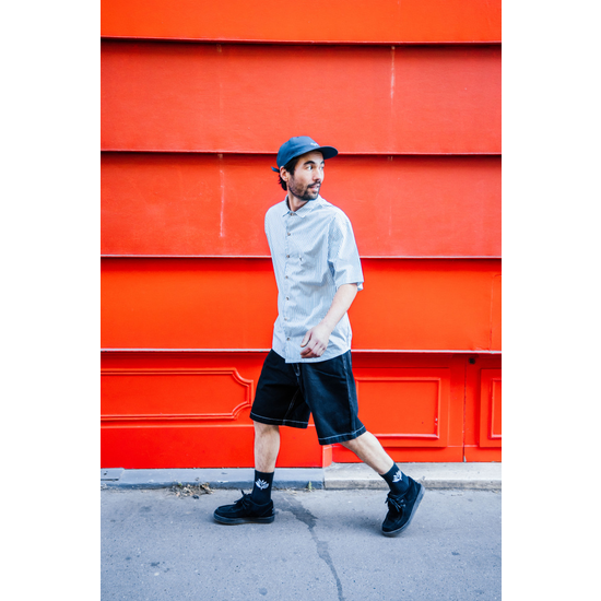 DENIM LONG SHORTS EXCELLENCE EXTRA BAGGY FITTED LONG SHORTS FALL BELOW THE KNEE HIDDEN POCKET BEHIND FLY ZIP 100% COTTON DENIM MADE IN EUROPE Swipe for Fit Pics Maz is 1m78 and wears a LARGE Size Chart on Last Slide