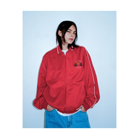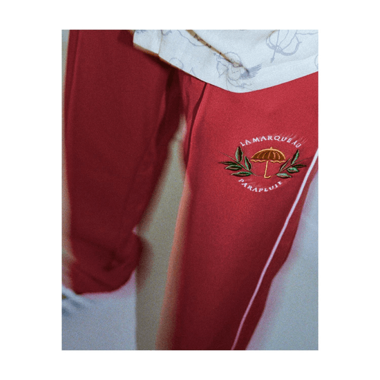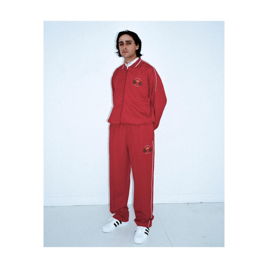 STRAIGHT LEG TRACKSUIT PANTS WITH WHITE PIPING ON SIDE LEGS.